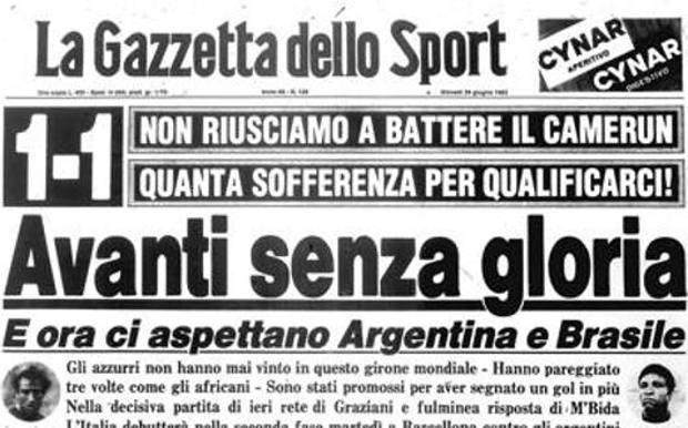 意大利人在第一轮小组赛的对手是波兰、喀麦隆和秘鲁,但球队的出线之路却异常艰难。在维戈,球队仅仅取得3场平局,最终靠着一个进球数的优势堪堪挤掉“非洲雄狮”,人们对于贝阿尔佐特和保罗·罗西正在失去耐心。人们开始用“堂吉诃德”的绰号来讽刺顽固的球队主帅,而罗西显然是他的桑丘。媒体刻薄地发问:“我们什么时候才可以在场上11打11?”“你们注意到新西兰的两个前锋了吗?我们或许需要他们为球队冲锋陷阵。”
